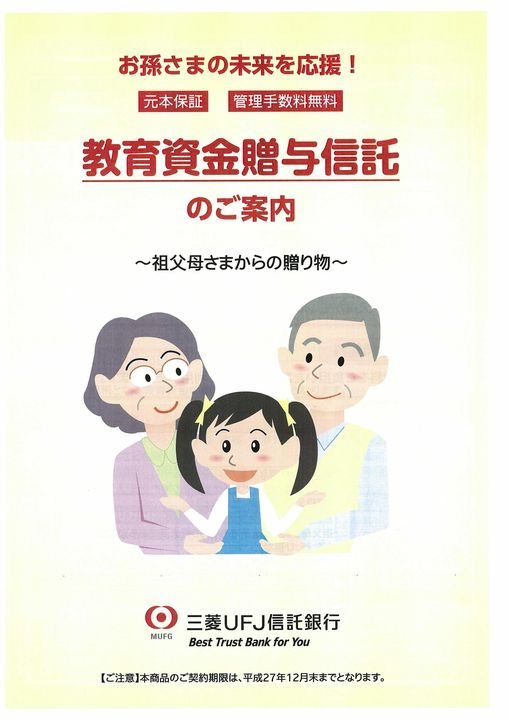 教育贈与信託の契約件数が急増しているそうです。今年の4月から開始したこの制度・「使い方を誤ると損する、使い勝手が悪い」等の批判もありますが・・・。