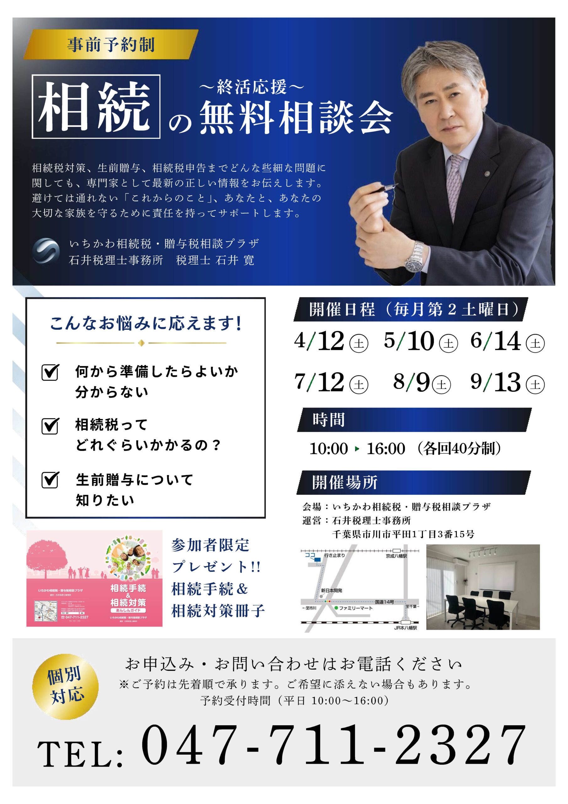 毎月第二土曜日に相続無料相談会を実施しています。相続のお悩みご相談ください。(完全予約制)詳細はこちら↓~終活応援~相続の無料相談会