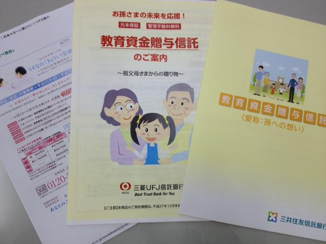 現在「教育資金贈与信託」については三菱UFJ信託、三井住友信託、みずほ信託、りそなの各銀行がサービスを開始しています。